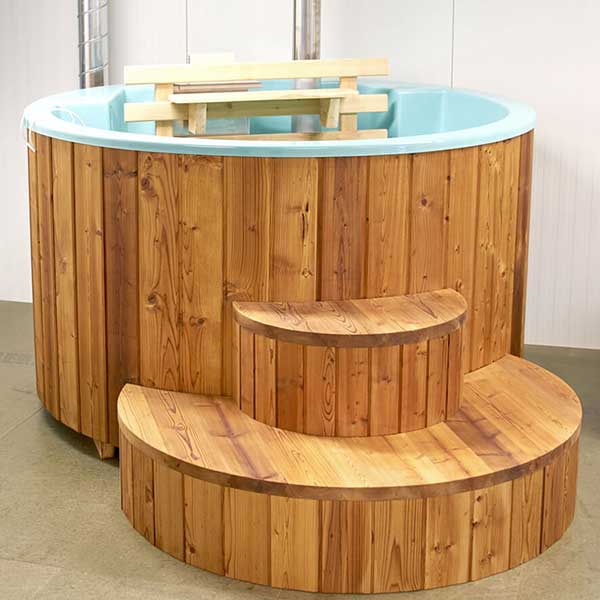 Die Treppe wird vormontiert geliefert, hat ein geringes Gewicht und gleichzeitig eine hohe Festigkeit. Sie brauchen sie nur an den Badezuber mit Holzofen zu stellen. Die Treppe ist in verschiedenen Holzoptionen erhältlich.